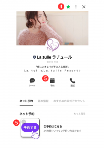 ❹★マークにチェックを入れるとラインのホームのお気に入りに追加されるので予約するのにおすすめです